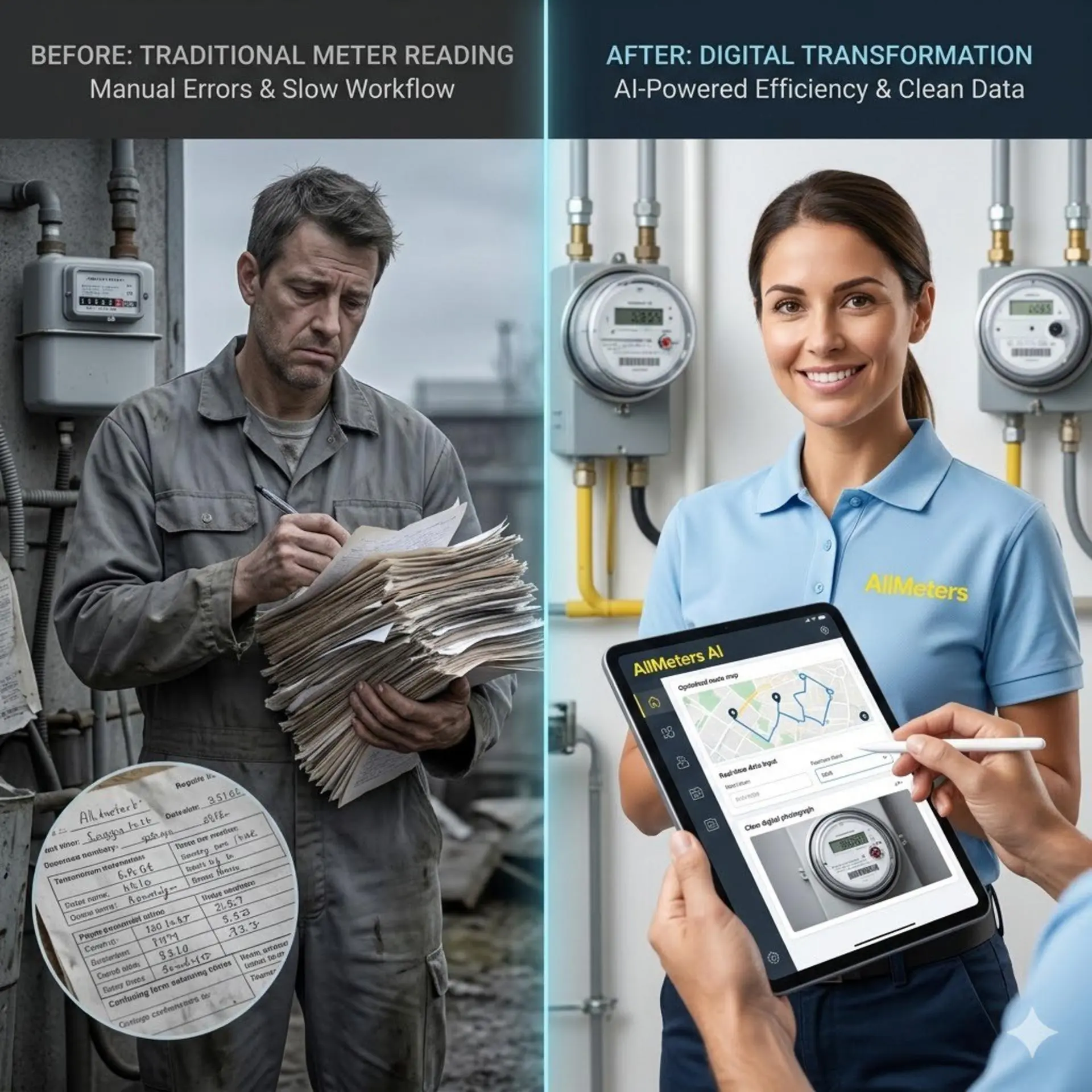 🤖 AllMeters folosește inteligența artificială în întreaga noastră gamă: detectarea contoarelor, chatbot-uri și elemente vizuale pentru rețelele sociale.