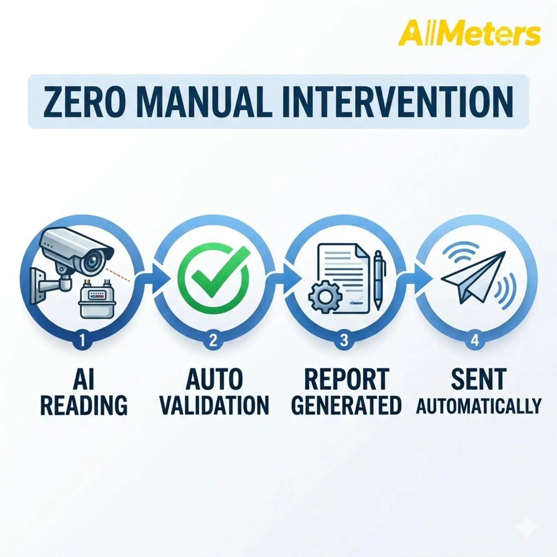📸 AI Reading → 📊 Validated Data → 📋 Generated Report → 📤 Automatically Sent